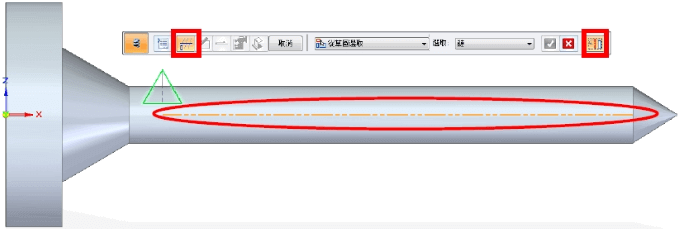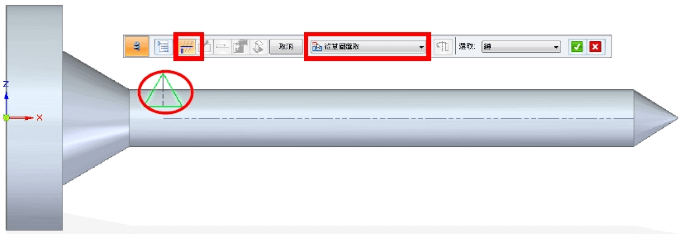 7.再次啟動【螺旋長出】指令,在選擇草圖與旋轉軸,接著不同的是起始端點