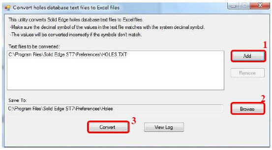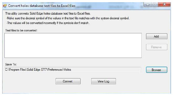 1.轉換器路徑在C:\Program Files\Solid Edge ST7\Custom\HoleDatabaseConverter\bin\Hole Database Converter.exe