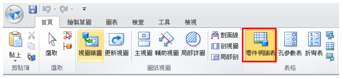 2.點擊零件明細表指令
