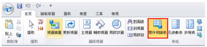 4.再次點擊零件明細表指令