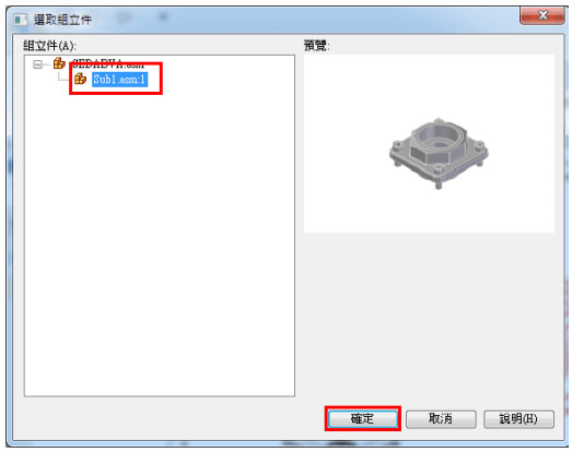 選擇次組件→確定