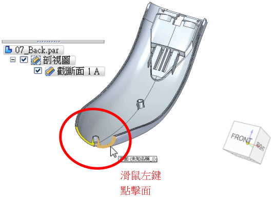 在同步建模作業中當修改模型時,可透過正視面轉正作業平面觀察幾何外觀。