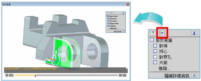 1.當修改同步建模模型時,設計意圖面板會自動開啟,