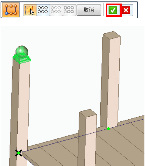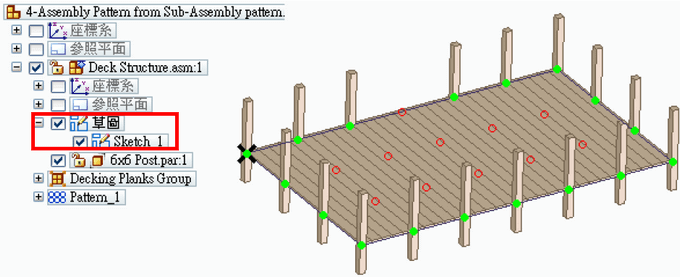 5.選取陣列零件,如亮綠色的草圖。