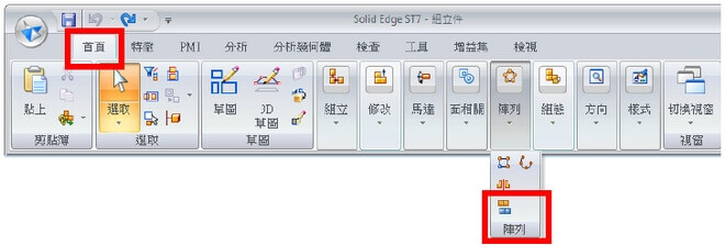 1.在組立環境中從【首頁】分頁,可找到【複製零件】指令。