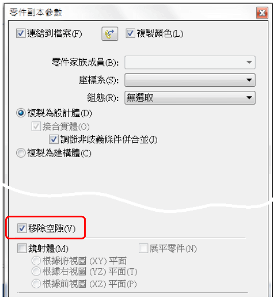 4.零件副本參數→勾選 移除空隙 (V) →完成。